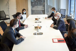 High Representative Josep Borell during the meeting with Osmani and Dimitrov; Photo: Twitter