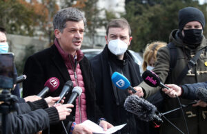 President of NUNS Željko Bodrožić with KRIK editor Stevan Dojčinović; Photo: FoNet