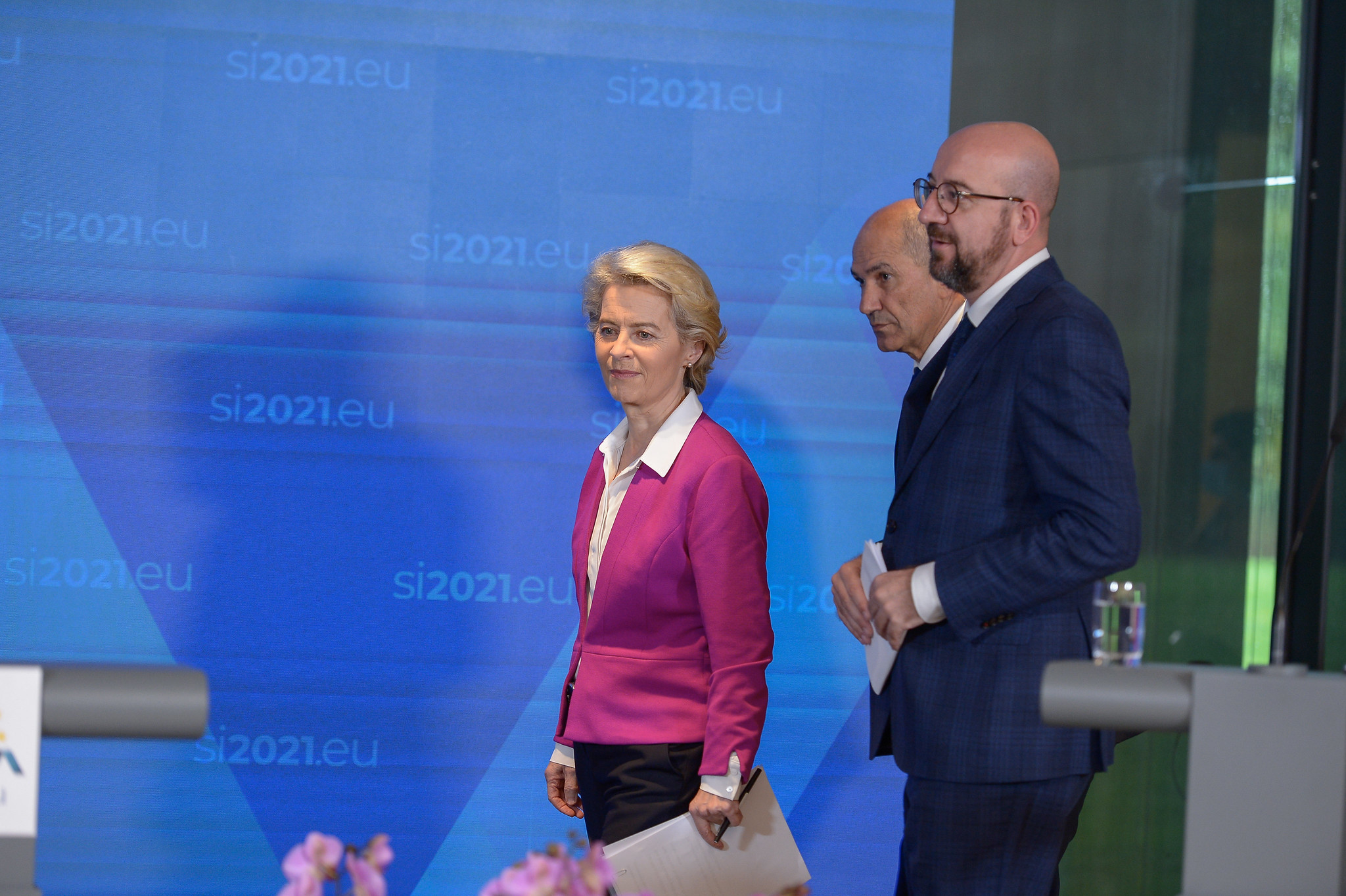 Ursula von der Leyen, Janez Janša and Charles Michel in Brdo; Photo: Flickr / Slovenian Presidency of the Council of the EU