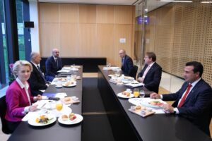 Meeting of the Zoran Zaev and Rumen Radev on the sidelines of the Summit on 6 October; Photo: Twitter / @eucopresident