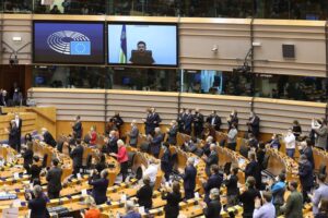 Members of the European Parliament applauding Zelensky, 1 March 2022; Photo: European Union