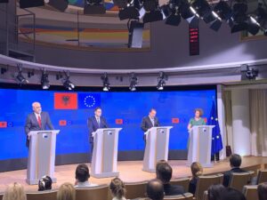 Press conference following EU-Albania IGC; Photo: Twitter / @OliverVarhelyi