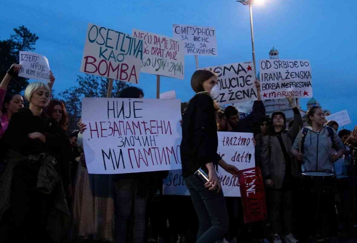 Protest organised by the 'Women's Solidarity' group in Belgrade; Photo: Twitter/ Anastasija Kojić