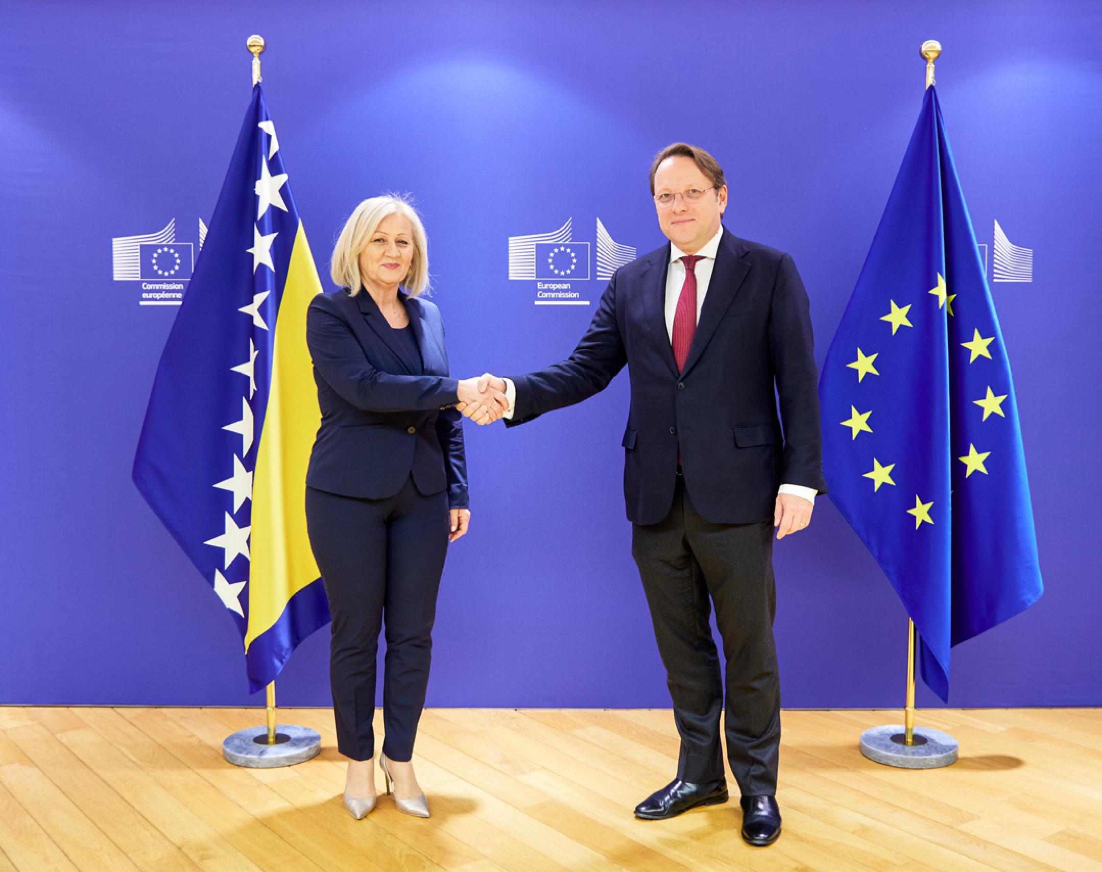 Borjana Krišto, Chairwoman of the Council of Ministers of Bosnia and Herzegovina, and Olivér Várhelyi, the EU Commissioner for Enlargement and Neighbourhood, 5 December 2023, Brussels; Photo: European Commission