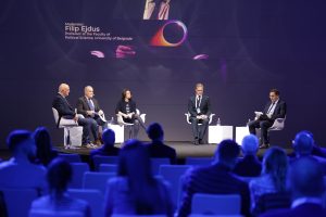 Isak Vorgučić, Veton Surroi, Jeta Xharra, Borko Stefanović, Filip Ejdus; Photo: Flickr / Belgrade Security Conference