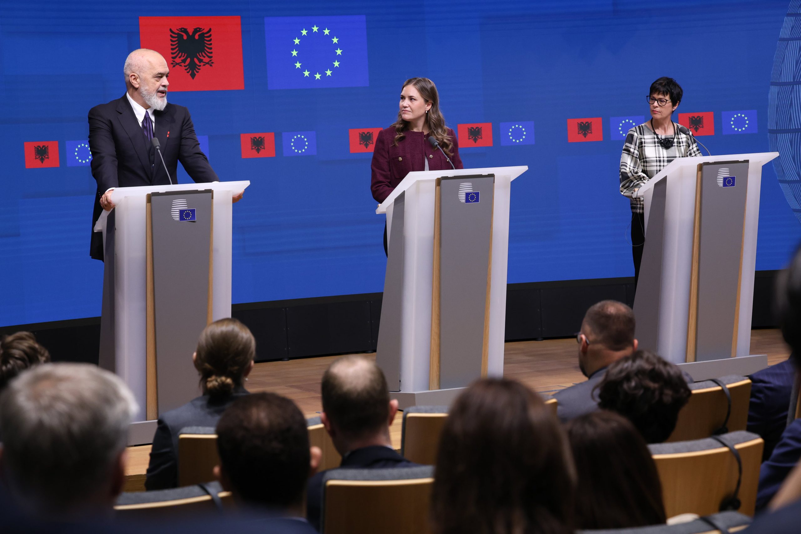 PM Edi Rama, Minister Marie Bjerre and Commissioner Marta Kos; Photo: European Union