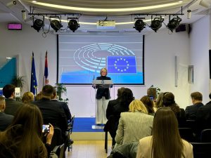 Delegation head Marta Temido at a press conference in Belgrade; Photo: EU Delegation to Serbia