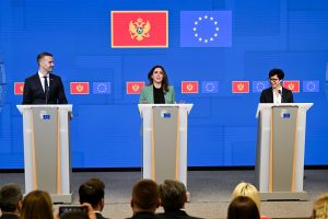 Montenegrin PM Spajić, Cyprus' Minister Raouna and Commissioner Kos; Photo: @MartaKosEU/X