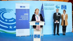 Gunn Marit Helgesen at a launching ceremony of LORAI, 1 April 2026, Strasbourg; Photo: Congress of Local and Regional Authorities