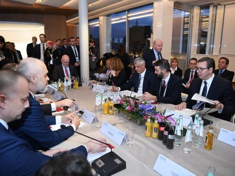 Kurti, Rama, Vučić, Đukanović and Borrell at an off-the-record event in Munich